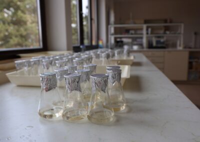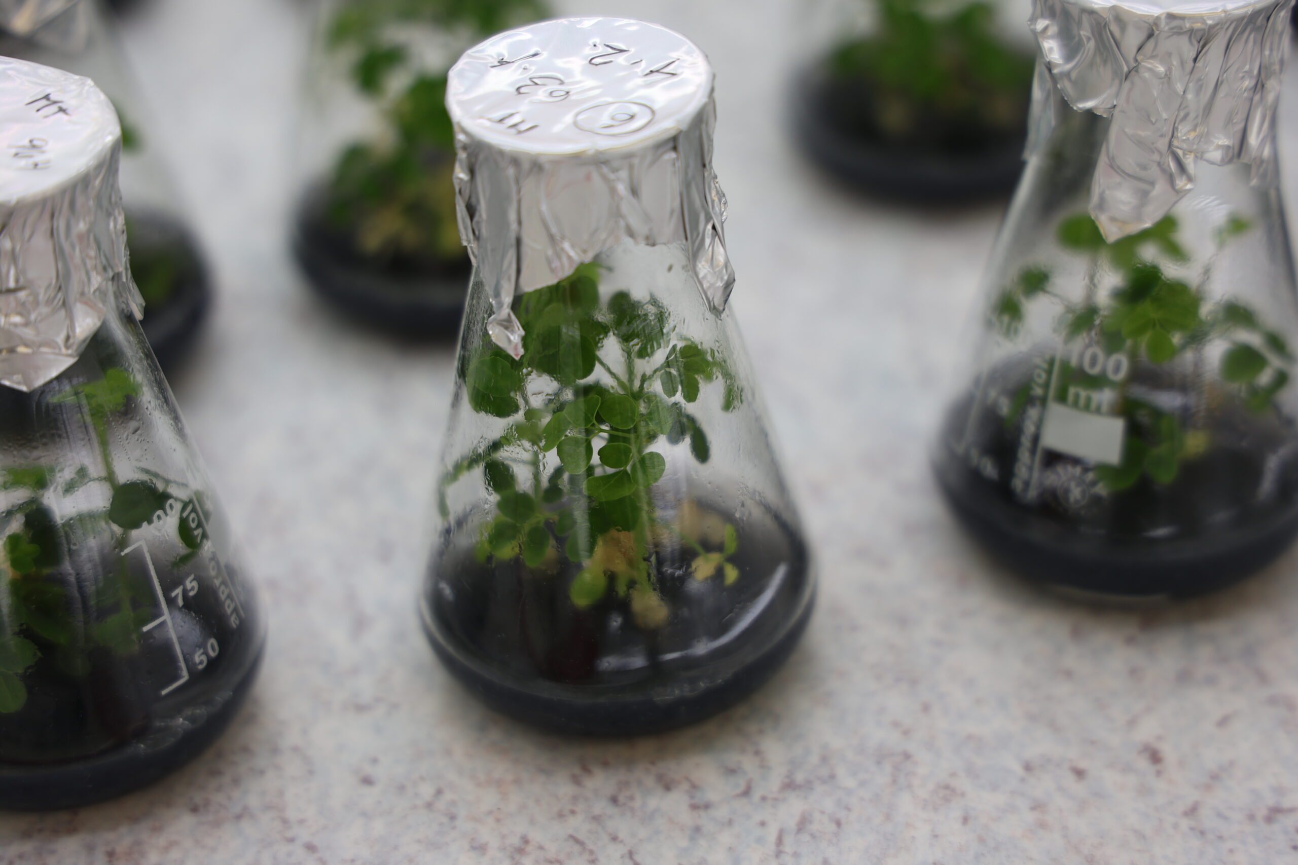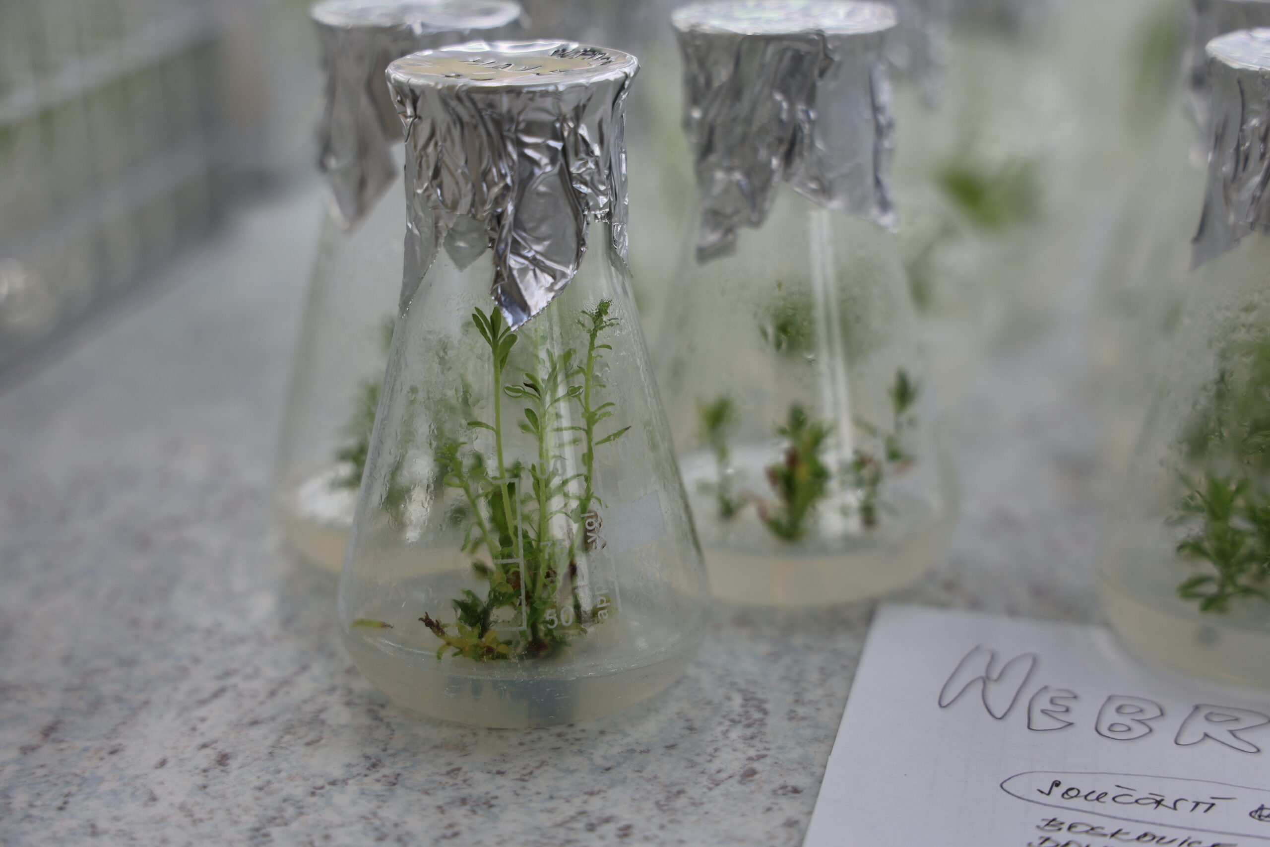 In vitro kultura znamená pěstování a kultivaci rostlin ve zkumavce na živných půdách (my vědci říkáme živných médiích). Podle toho, čeho chceme dosáhnout, měníme a zkoumáme složení těchto živných médií. Ta obsahují anorganické a organické složky, pro ukotvení rostlinek se taky přidává agar – to je taková želatina z mořských řas podobná té na jahodovém koláči🙂). Velmi důležitou složkou jsou pak růstové regulátory – látky, které ovlivňují, jakým směrem se bude ubírat vývoj části rostliny (vědecky explantátu).