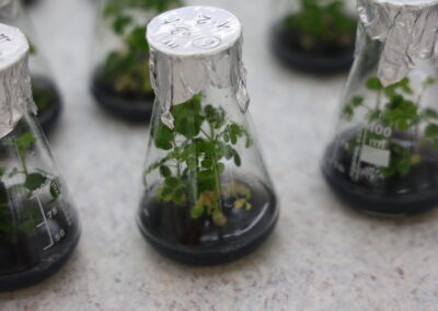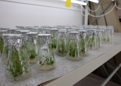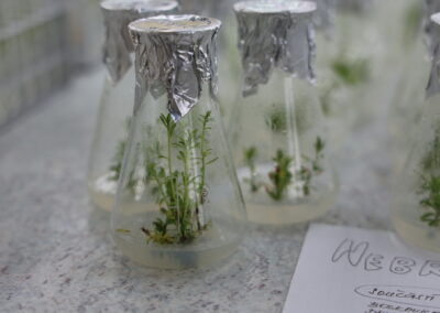 ve sterilních podmínkách, tedy bez mikroorganismů. Díky rostlinným biotechnologiím – tedy kultivací rostlin v laboratorních podmínkách, můžeme s rostlinou provádět věci, které by nám ve venkovních podmínkách nebo ve skleníku “neprošly”. Například je můžeme pěstovat po celý rok, protože jim regulujeme světlo a teplo. Můžeme získat rostlinu z velmi malé části, např. z pupenu, a namnožit tak za krátkou dobu velké množství sazenic. In vitro také můžeme ovlivnit kulturu různými látkami a dát vzniknout rostlinám s novými vlastnostmi nebo zlepšit jejich zdravotní stav, a ty pak dále uchovávat jako zdroj zdravého rostlinného materiálu. Ve VÚKu využíváme rostlinné biotechnologie ve dvou oblastech, pro produkci rostlin nebo pro jejich šlechtění.