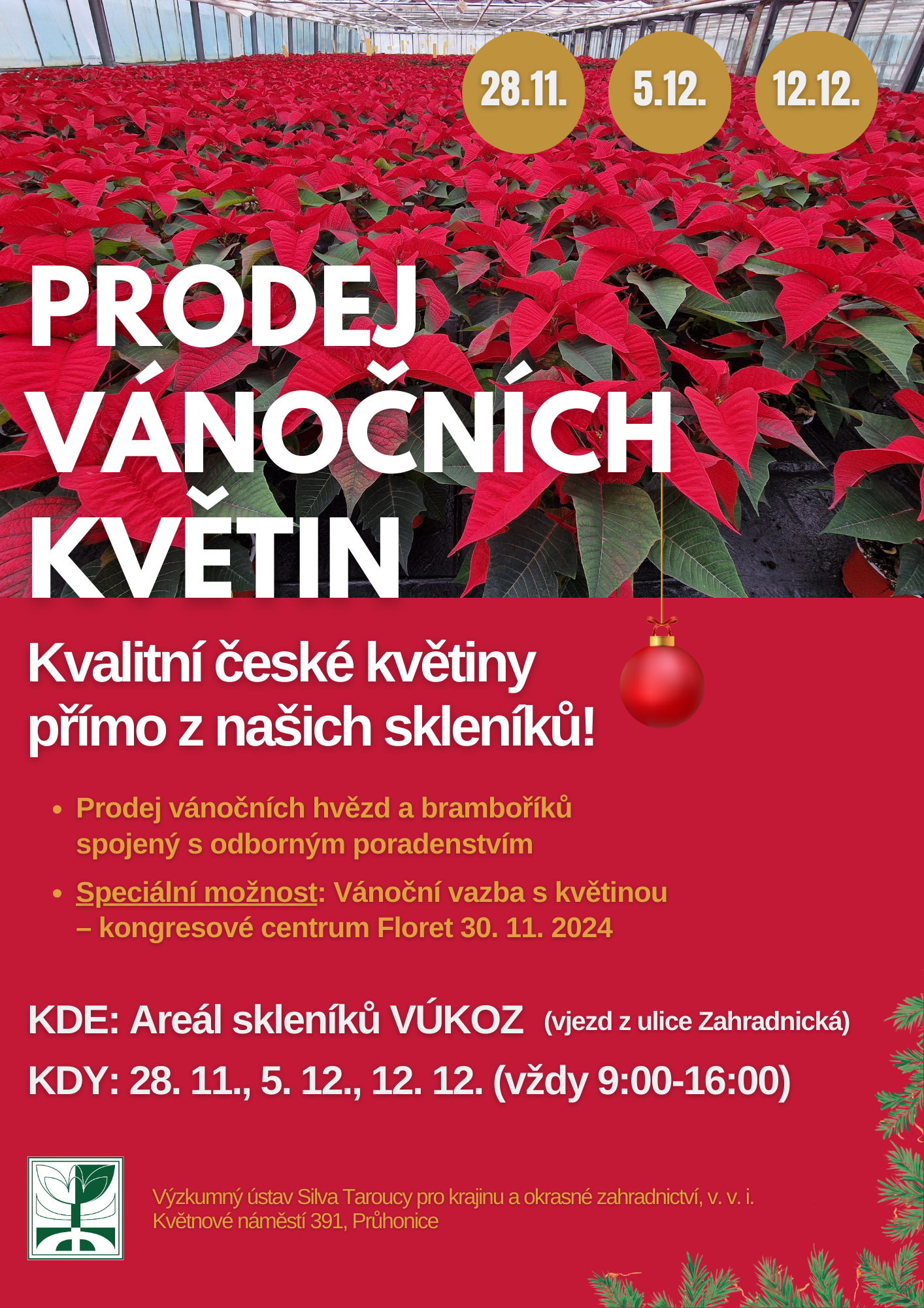 Prodej vánočních květin ve VÚKOZ